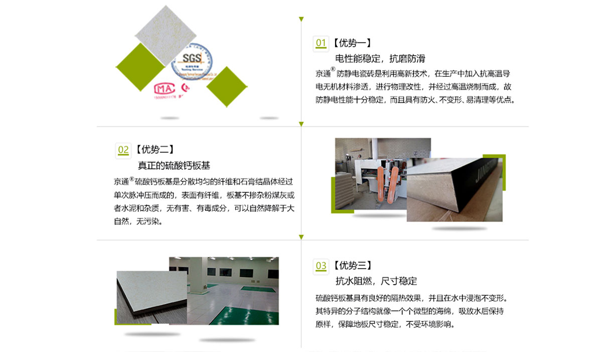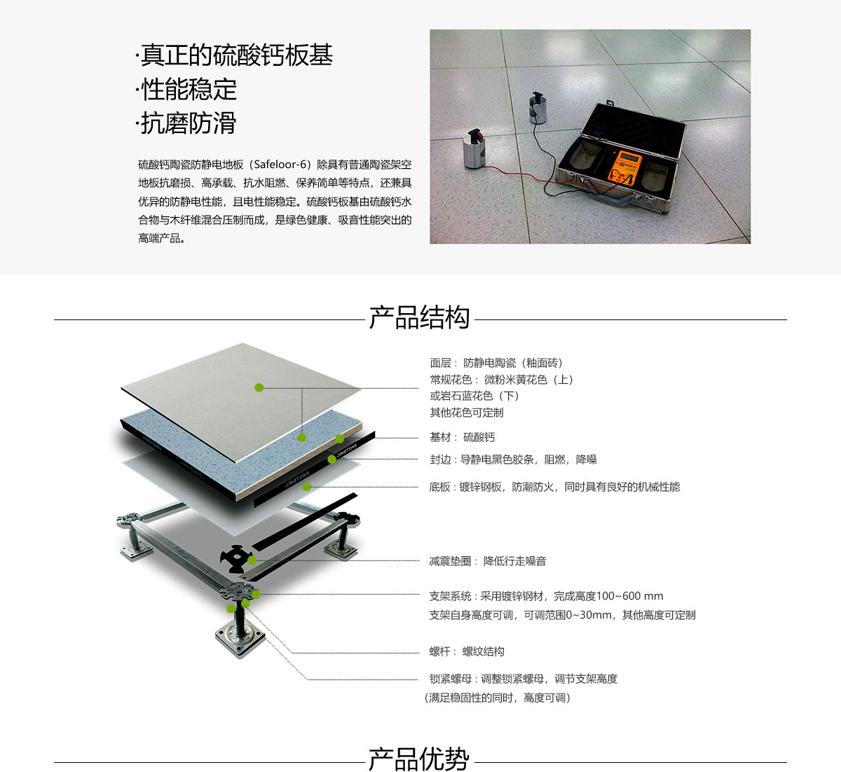 硫酸鈣陶瓷防靜電地板除具有普通陶瓷架空地板抗磨損、高承載、抗水阻燃、保養(yǎng)簡(jiǎn)單等特點(diǎn),還兼具優(yōu)異的防靜電性能,且電性能穩(wěn)定。